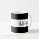 Esta caneca personalizada foi projetada para fornecer um toque de individualidade à sua rotina diária. A característica central do design é uma banda ampla e personalizável que envolve a caneca, pronta para ser adornada com um nome, reproduzida em uma fonte sans-serif contemporânea e nítida. O tamanho da fonte faz uma declaração em negrito, garantindo que o texto seja legível em qualquer sala, fazer-o como uma peça sobressalente em qualquer configuração. O recurso de personalização nesta caneca faz dela um presente perfeito e ponderado para amigos, familiares ou colegas para qualquer ocasião, sejam eles aniversários, feriados ou marcos profissionais. Também serve como uma adição encantadora à cozinha, à mesa de escritório de qualquer pessoa, ou como guardiã de eventos especiais. No espírito de expressão pessoal, a caneca é projetada para ser oferecida em várias cores. Independentemente da matiz escolhida, o design manterá sua nítida clareza e impacto. As cores são selecionadas para complementar as linhas limpas do texto, garantindo que cada personalização se destaque com elegância e simplicidade. Esta caneca não é apenas um item de bebida; é uma declaração pessoal e um lembrete diário da individualidade e da consideração. É uma mistura de utilidade e expressão pessoal, fazer um item essencial para quem valoriza tanto a praticidade quanto um toque personalizado em suas vidas cotidianas.