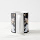Uma caneca de café com foto de gato com nomes. Substitua a foto por sua e altere o texto.