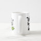 Texto preto em uma caneca branca escrito "nós combinamos como" e na parte inferior à direita estão duas ervilhas verdes fofas em uma vagem.
