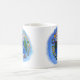 A caneca tem uma pintura colorida e divertida do globo com imagens de um urso polar, urso panda e baleia azul. O texto pintado à mão circula o mundo dizendo, "Nossas escolhas, Seu futuro" com setas reciclares separando o texto. Esta caneca é um lembrete ambiental amigável da nossa responsabilidade em ajudar a manter a saúde do planeta.