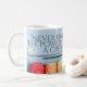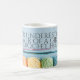 Caneca de café com tema crochê, com palavras personalizáveis inspiradas em fios para um toque quente à sua rotina matinal. As palavras na caneca dizem "nunca subestime o poder de uma garota com gancho de crochê" mas você pode mudá-los para dizer qualquer coisa.