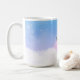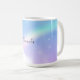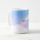 Uma caneca com uma imagem de fundo suave e adorável. Azul pastel e nuvens cor-de-rosa com um arco-íris mágico.