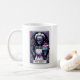 A caneca de um padeiro em um tema trending tarot com um padeiro ilustrado segurando um uísque e um bolo.
