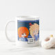 Uma caneca com um bobo em quadrinhos com seus personagens favoritos de Wingz: Cara & Kyle. Se você conhece Kyle, o garoto com cabelo loiro, então você sabe que ele não gosta de vestir seus óculos, o que o faz entrar em coisas. Cara, a garota de cabelo vermelho, é a que sempre lhe diz para vestir os óculos, mas porque Kyle é teimoso, não o faz.