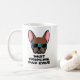Esta caneca de café de buldogue francesa faz o presente perfeito para Dia de os pais para qualquer Pai francês. A design apresenta um estilo de desenho ilustrativo de um buldogue francês de cor vermelha que veste óculos de sol com a frase "O melhor Pai de francês de sempre!" A design é a mesma em ambos os lados da caneca e a redação pode ser alterada para qualquer coisa que você quiser.