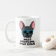 Esta caneca de café de buldogue francesa faz o presente perfeito para Dia de os pais para qualquer Pai francês. A design apresenta um estilo de desenho ilustrativo de um buldogue francês de cor azul vestindo óculos de sol com a frase "O melhor Pai de francês de todos!" A design é a mesma em ambos os lados da caneca e a redação pode ser alterada para qualquer coisa que você quiser.