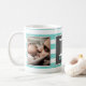 Dia dos pais feliz! Melhor caneca de café moderna do pai nunca. Com as listras azuis e brancas do ovo do pisco de peito vermelho e um monograma personalizado. Adicione 2 fotos!