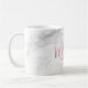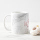 A futura Sra. PixDezines. canecas em falso metal rosa dourado moderno, guiamento manual escrito / caligrafia e coração em mármore branco.