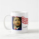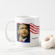 Eu pintei este retrato de Barack Obama no dia de eleição para expressar meu entusiasmo. Agora você à parte da lata no entusiasmo de um futuro prometedor cada vez que você toma um sorvo deste design presidencial. Cada lado desta caneca mostra o presidente futuro e sua frase da marca registrada do discurso de aceitação. "Sim nós podemos".
