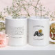 Deixe seu pai saber o quanto ele significa para você no dia do seu casamento com nossa linda e especial caneca personalizada de casamento. Apresenta ilustrações de sapatos em aquarela com florais. Poema ou mensagem personalizada no verso. Personalize com a data do seu casamento e nome. Um presente lindo e atencioso para o pai no dia do seu casamento que ele irá guardar com carinho.