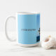 Start your day with a calm coastal moment. This mug features a bright palm tree overlooking a deep blue ocean, with an open sky area that includes two editable text lines for your family name and vacation year or trip phrase.
