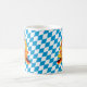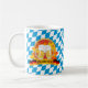 Celebrar Oktoberfest, o famoso festival anual de cerveja em Munique, Alemanha. Esta colorida design de caneca de café apresenta um par de canecas de cerveja e uma faixa com a bandeira alemã colorido sobre um fundo de bandeira bávaro.
