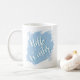Design simples que diz "Olá inverno" em texto branco elegante em um derrame de pincel azul gelado.