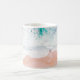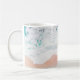 Aqua turquesa oceano praia ondas e caneca de café náutica de areia rosa.