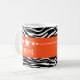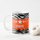 Trendy e moderna Sassy Star Zebra Mug apresentando um fundo de impressão em branco e preto chico e uma borda laranja ousada adornada com um divertido motivo de estrela. Este design feminino pode ser personalizado com o texto personalizado de sua escolha. Clique em "Personalizar" para encontrar mais opções de personalização.