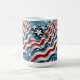 Comece seu dia com uma xícara de orgulho americano! Esta impressionante design de bandeira americana apresenta riscas ousadas, vermelhas onduladas, brancas e azuis com estrelas dispersas, criando um olhar dinâmico e atraente para os olhos. Perfeito para patriotas, veteranos, apoiadores militares, e qualquer um que ama os EUA, esta caneca de café é excelente para celebrar o Dia da Independência (4 de julho), Dia do Memorial, Dia dos Veteranos