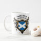 Design legal da crista com a bandeira nacional de cores e de subtítulo de Scotland: Orgulhoso ser escocês. Grande presente escocês do orgulho.