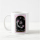 Caneca espantosa com vibração celestial com comichão, com a placa "Tarot" dos amantes em cores preta e rosa.