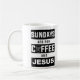 Antes de ir à igreja no domingo de manhã, comece sua manhã com uma xícara de café com Jesus. O perfeito apanhador para amantes de café. Nossa caneca de café cerâmica combina forma e função para uma experiência de bebendo sem igual. Comece seu dia de folga com uma deliciosa xícara de café nesta linda caneca. O peso substancial e suave e de alta qualidade sentem o seu ritual diário, fazer até mesmo uma simples respiração parece uma indulgência luxuosa. Trate-se ou divirta-se com um amigo ou membro da família que ama o café com esta caneca. Disponível em 11 ou 16 oz.