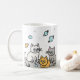 Os gatinhos flutuam ao redor de uma galáxia branca com estrelas brilhantes, nebulosas de algodão doce girando e planetas aninhosos que se assemelham a rosquinhas gigantes com aspersores.