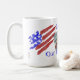 For Father's Day, a red, white & blue patriotic photo mug with an abstract watercolor style American flag on either side of photo. Text currently says "Our Dad, Our Hero." You can customize the text. Variety of mug styles to choose from. Great birthday gift, too!