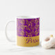 Caneca De Café Ouro chic Flores púrpura | Personalizado