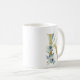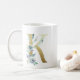 Caneca De Café Ouro inicial com folhagem floral azul