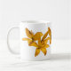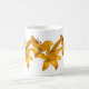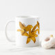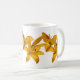 Esta caneca apresenta um design simples de seis lírios asiáticos amarelos ouros contra um fundo branco puro.