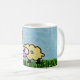 Ovelhas amarelas engraçadas com um rosto rosa, em um campo de dentes-de-leão em um dia brilhante e ensolarado. Arte digital original de Taylor Addams. Nós vamos adorar!