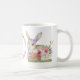 Este Feriado de Páscoa agarra esta caneca personalizada no design de aquarela do coelho de Páscoa giro, cesto de ovo, flores e um quadro de círculo floral com o seu texto ou texto inicial.