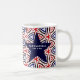 O American Patriotic Red White Blue Star Pattern Coffee Mug tem um padrão moderno de orgulho americano com cores vermelhas, brancas e azuis da bandeira americana. Também excelente para a Celebração de 4 de julho e dar como presente a essa pessoa especial em nossa vida. Personalize.
