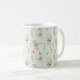 Um bonito padrão de aquarela com várias flores pintadas manualmente em fundo verde claro.