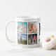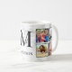Crie sua própria caneca de café de colagem personalizada de 8 fotos com suas imagens personalizadas, monograma e nome em um fundo na moda elegante de mármore branco.