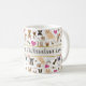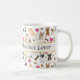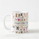 Qualquer amante do Chihuahua super entusiasmado vai adorar beber sua bebida matinal nessa caneca de café com o pacote de cães fofos Chihuahua. O design loucamente fofo apresenta um padrão de cachorrinhos Chihuahua, latidos, arf e au-au, pegadas, corações e ossos de cachorro. São apresentados cães Chihuahua sentados, em pé e deitados, cães de pelo longo, cães de pelo curto, cães marrons, pretos e brancos. PERSONALIZE essa caneca digitando um ditado, nome ou apelido na caixa do modelo de texto. Ou mantenha o texto que diz Amante do Chihuahua Super Entusiasmado. Essa caneca é um ótimo presente para amantes de cães. Esse design está disponível em uma variedade de tamanhos e estilos de canecas, desde canecas de viagem até canecas fosqueadas. Crie um presente e um para