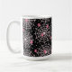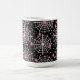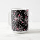 Uma caneca com um padrão perfeito e fofo com teias brancas e aranhas cor-de-rosa.
