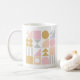 Caneca De Café Padrão de Formas Geométricas em Rosa Pastel e Dour