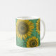 Padrão de girassóis abstrato amarelo na caneca de café verde