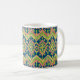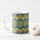 Uma Mug Café, com um padrão étnico Ikat em terracota, ouro amarelo e verde em fundo azul profundo. Parte da coleção Posh & Painterly 'Ikat', você pode personalizar facilmente esta Mug de Café redimensionando ou girando o azulejo padrão Ikat. Este padrão vai ajustado qualquer Mug de Café.