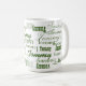 Uma caneca personalizada simples e simpática. Crie sua caneca de café... é fácil e divertido fazer... seu próprio nome impresso em estilos verdes em toda a caneca. Adicione seu nome e faça dele seu! Esta caneca personalizada é excelente para uso diário e faz um presente divertido para amigos, familiares ou colegas de trabalho. Basta digitar o nome e criar uma caneca de nome personalizada que seja única, útil e totalmente você. Perfeito para o café da manhã, chá ou escritório.