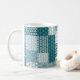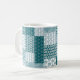 Uma Coffee Mug, com um padrão de Faux Patchwork no estilo étnico em Teal e White. Parte da coleção Posh & Painterly 'Boho Bazaar', este padrão pode ser facilmente personalizado alterando a direção ou a escala do azulejo padrão para um aspecto completamente diferente.