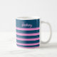 Caneca De Café Padrão de Stripes Azul e Rosa Personalizado