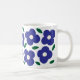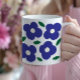 Uma caneca floral vibrante e inspirada por retrorreflectores, com desenhos ousados e abstratos e padrões de flores sobredimensionados, em cores brancas e chamativas. Perfeito por adicionar um toque de charme e nostalgia à sua rotina de café ou chá.