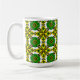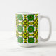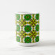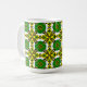 Vibrante desenho geométrico apresenta formas coloridas e ousadas com motivos florais simétricos, oferecendo um toque vivo e artístico.