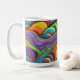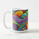 Esta é uma caneca de café da Habatour Creations, cheia de um autêntico padrão digital geométrico abstrato com linhas onduladas Copyright de @Habatour Creations Copiar ou usar sem permissão é ilegal