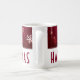 Moderno Snowflake Red Pattern Feliz Café Mug. Esta caneca de Natal moderna vem com um Feliz desejo de Natal e um padrão festivo de neve vermelha.