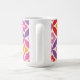Isto são lindas flores retrorcoloridas no padrão dos círculos do meio século em laranja, vermelho, roxo e rosa. É uma linda caneca de café para mulheres que adoram designs florais retrorais