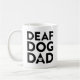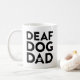 O texto preto "Pai de Cachorro Surdo" é empilhado em três linhas de texto em maiúsculas. O "a" em "Pai" tem um dentro de pata branca.