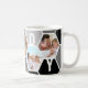 Caneca de café de mel, personalizada com 5 de suas fotos favoritas e impressa com um nome de 5 letras, como PAI. A design apresenta uma colagem de fotos em favos de mel em paleta de cores monocromáticas de preto e cinza. Se quiser alterar as cores, clique em "personalizar mais" e clique em cada hexágono que deseja alterar.
