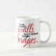 Adicione um toque de inspiração e motivação à sua bebida favorita com esta caneca, que mostra as palavras "medo cria muros, mas coragem constrói pontes" em elegantes roteiros fluentes e sans serif lettering. Design e Copiar © W.H. Sim. Todos os Direitos Reservados. Mais informações em zazzle.com/wordsofwhimsy