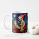 Palhaço melancolia com maquiagem de lágrimas na cena do carnaval luoniosa na caneca de cerâmica, ideal para colecionadores, amantes de arte e fãs de circo. Adicione talento dramático ao seu tetógrafo com esta caneca de cerâmica em greve com ilustração de palhaço lágrima. Vestido com uma fantasia vermelha arrojada, com um ouro rufflado e boné pontiagudo, o rosto doloroso do palhaço - pintado com uma maquiagem de lágrimas azuis e um nariz vermelho - é colocado contra um céu noturno sangrento iluminado pela lua e luzes de rua brilhantes. Este design captura a beleza eterno da nostalgia do circo, misturando emoção e artista de uma forma única. Perfeito para colecionadores, entusiastas do carnaval, ou qualquer pessoa que desfrute de designs expressivos e ricos em histórias no uso diário.